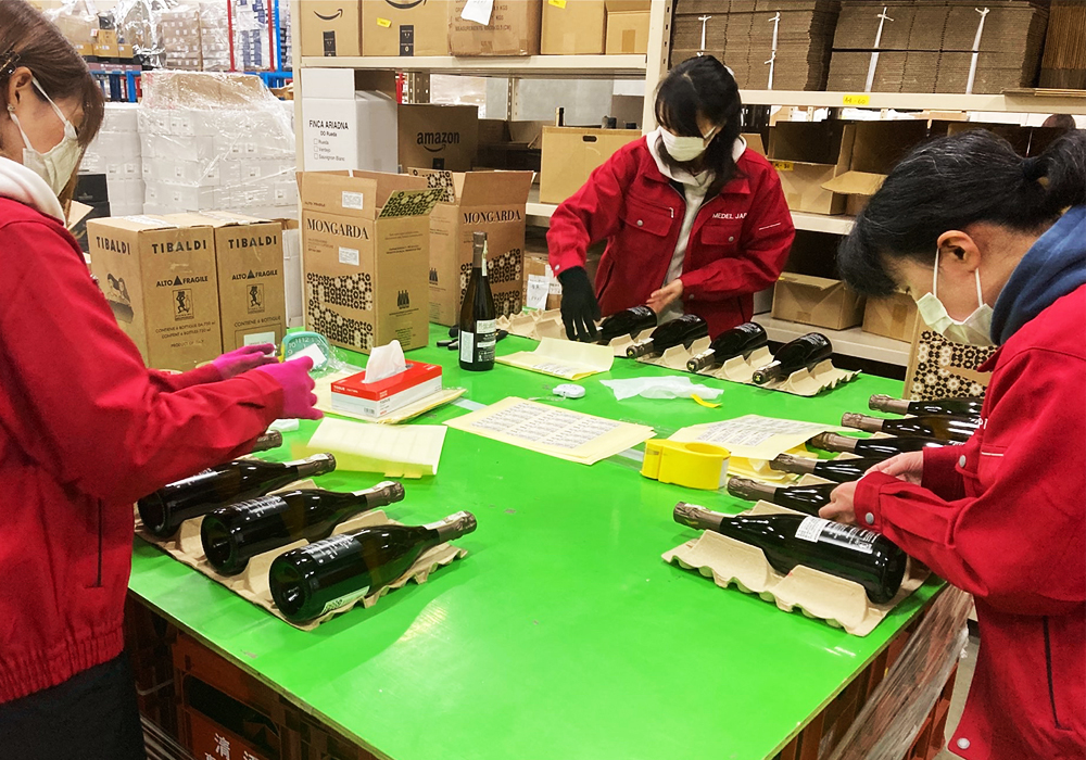 ラベル貼り・セット組み作業も専任ス タッフが丁寧に対応。流通加工のみの ご依頼も承ります。