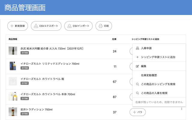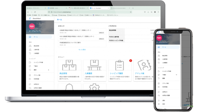 お手持ちのパソコン・スマホでどこでも利用できます。在庫管理・入出庫管理・配送情報など物流工程がまとめて管理でき、配送後の伝票番号もリアルタイムに反映します。