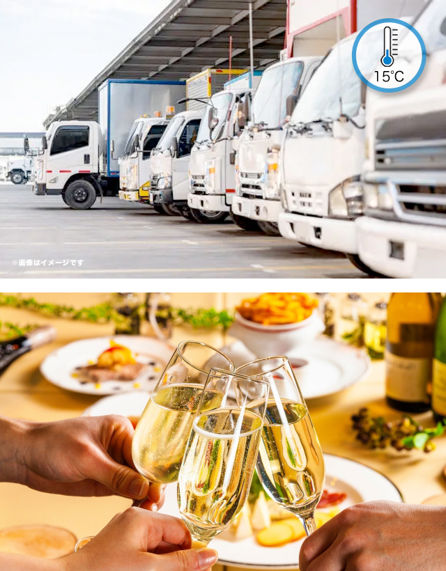 メーデルワイン便は、温度管理車両で配送し、ワインの品質を守り最適な状態で納品します。納品後、すぐに最適な状態のワインをご提供いただけます。