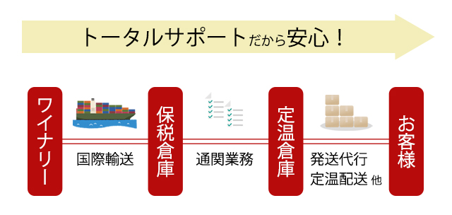 ワイン専用配送のため、他商品との混載がなく、輸送中の破損リスクを抑えます。また、集配先の効率化により、配送料のコスト削減も実現します。
