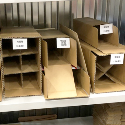 ワインと一緒に輸入されたお菓子を、セットで配送します。サイズに合わせたダンボールの手配もお任せください。